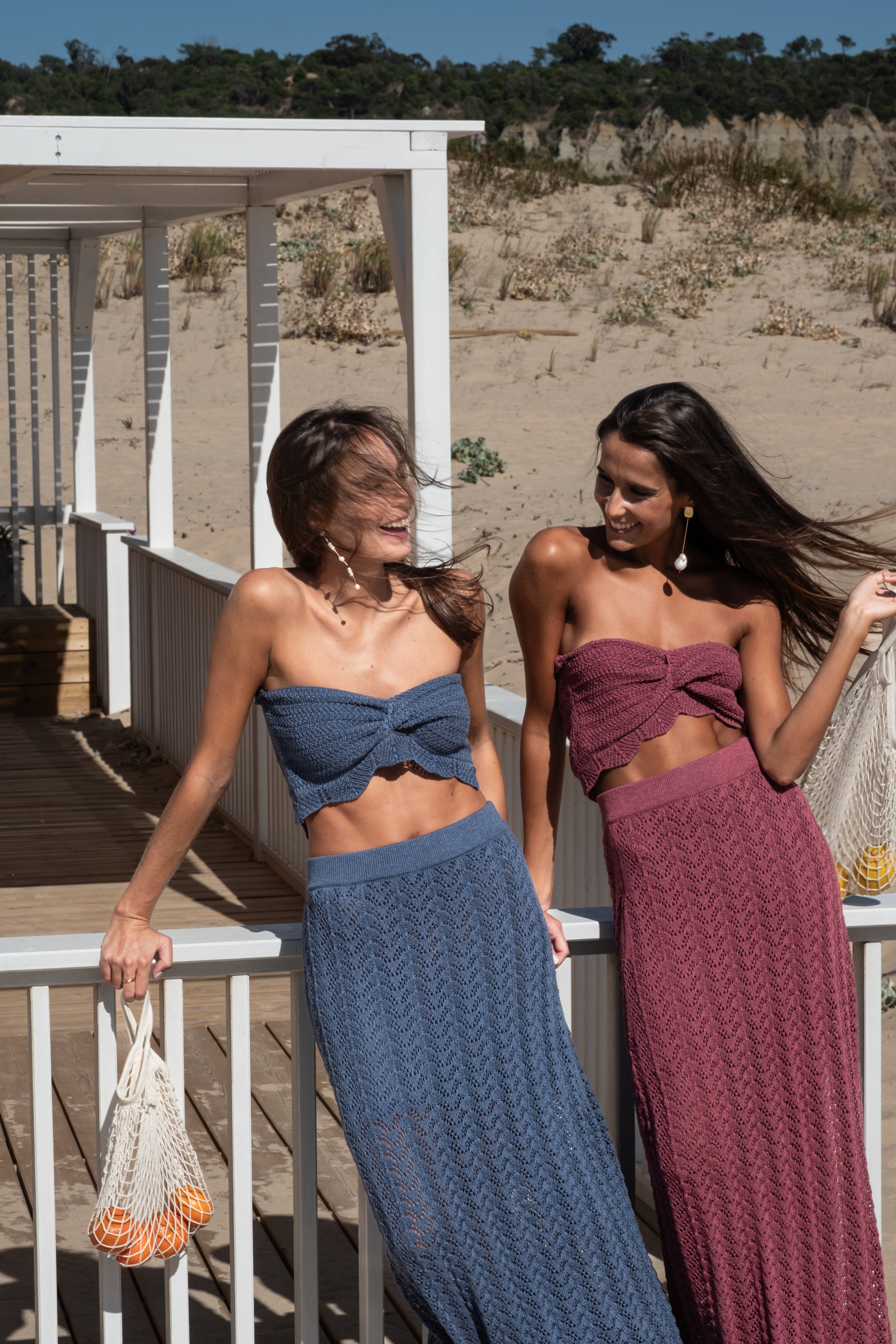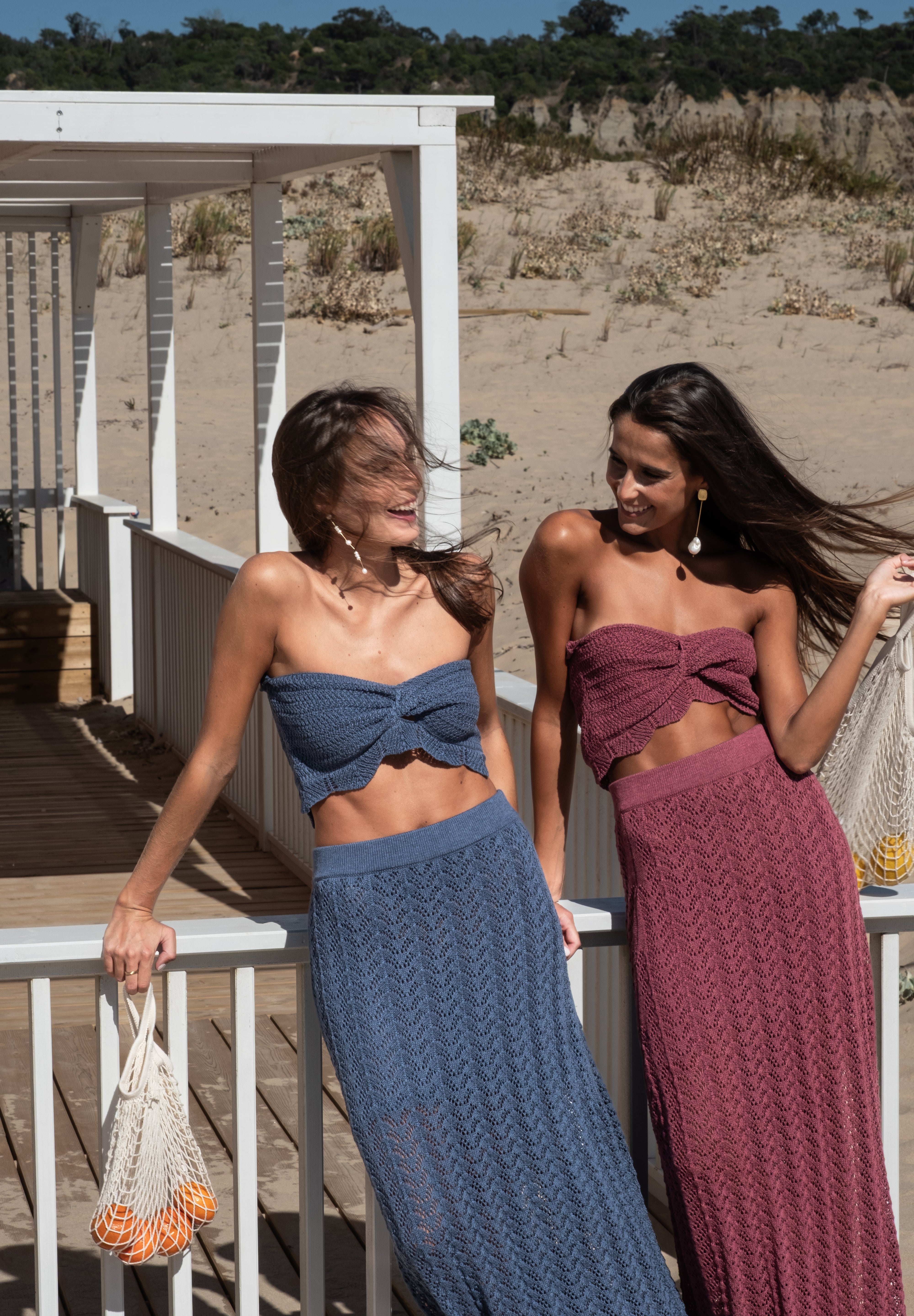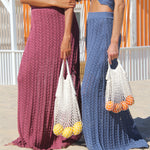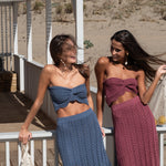 El Conjunto tejido en algodón viscosa y punto calado, este conjunto es una declaración de estilo. Además, su top strapless calado y falda con pretina elasticada y forro interior añaden un toque de elegancia y sofisticación.