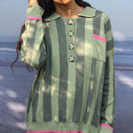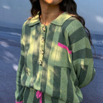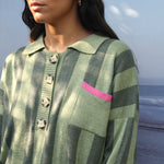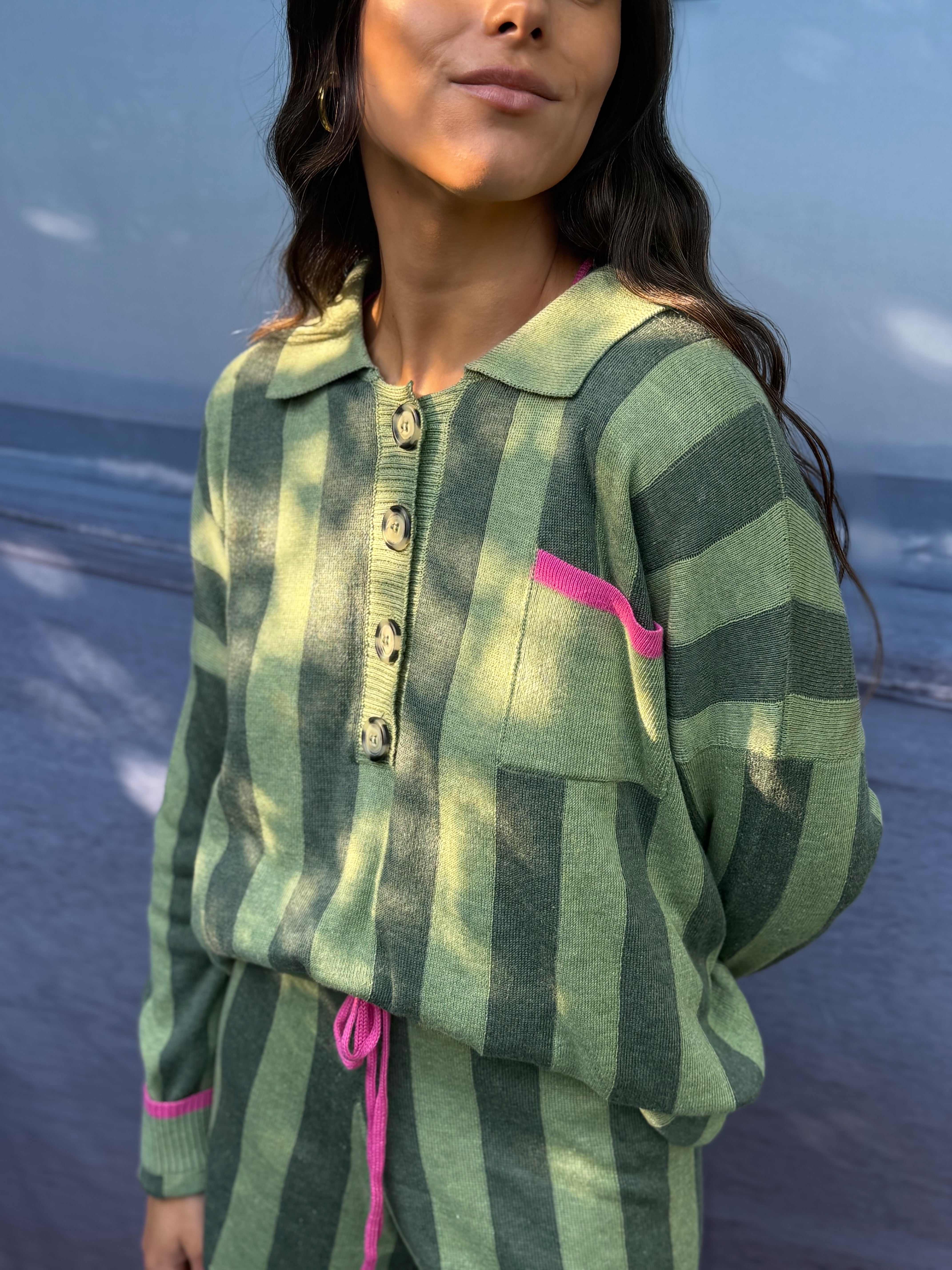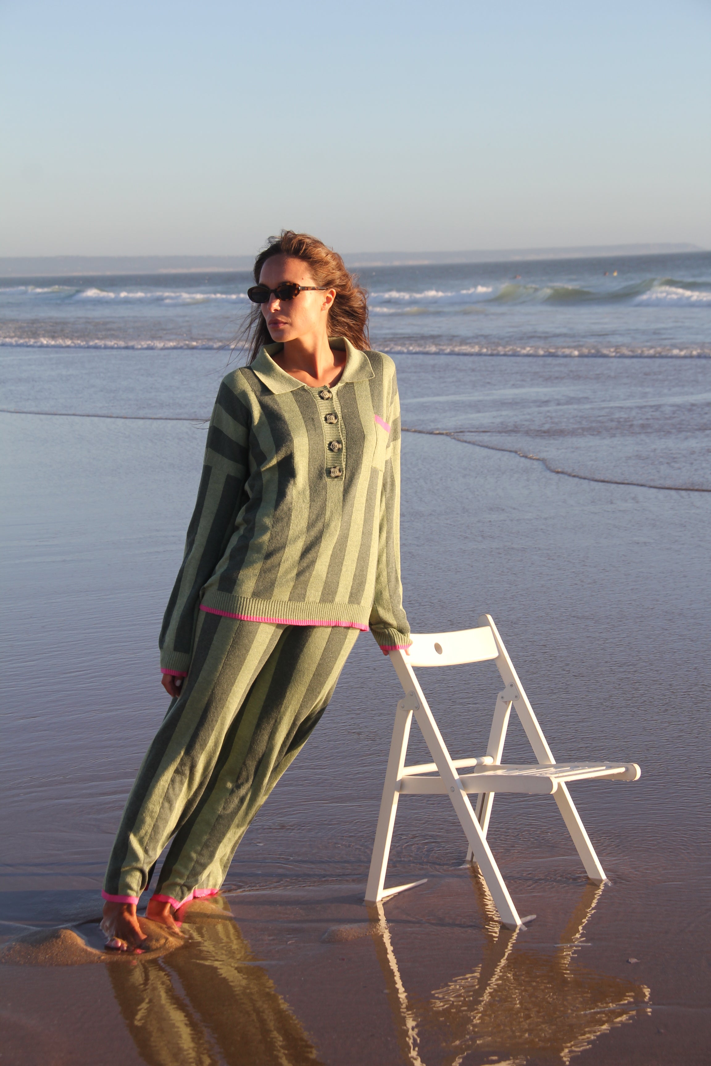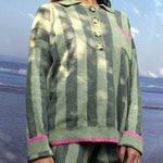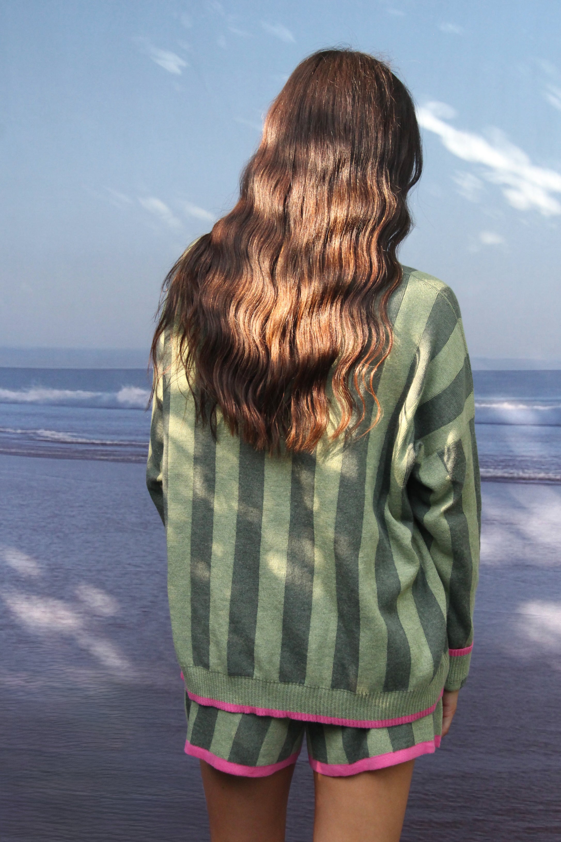 Chaleco confeccionado en algodón viscosa, punto suave y delgado para primavera y verano. Fit oversized, abotonado y cuello polo con detalles a color. Talla única.
