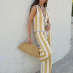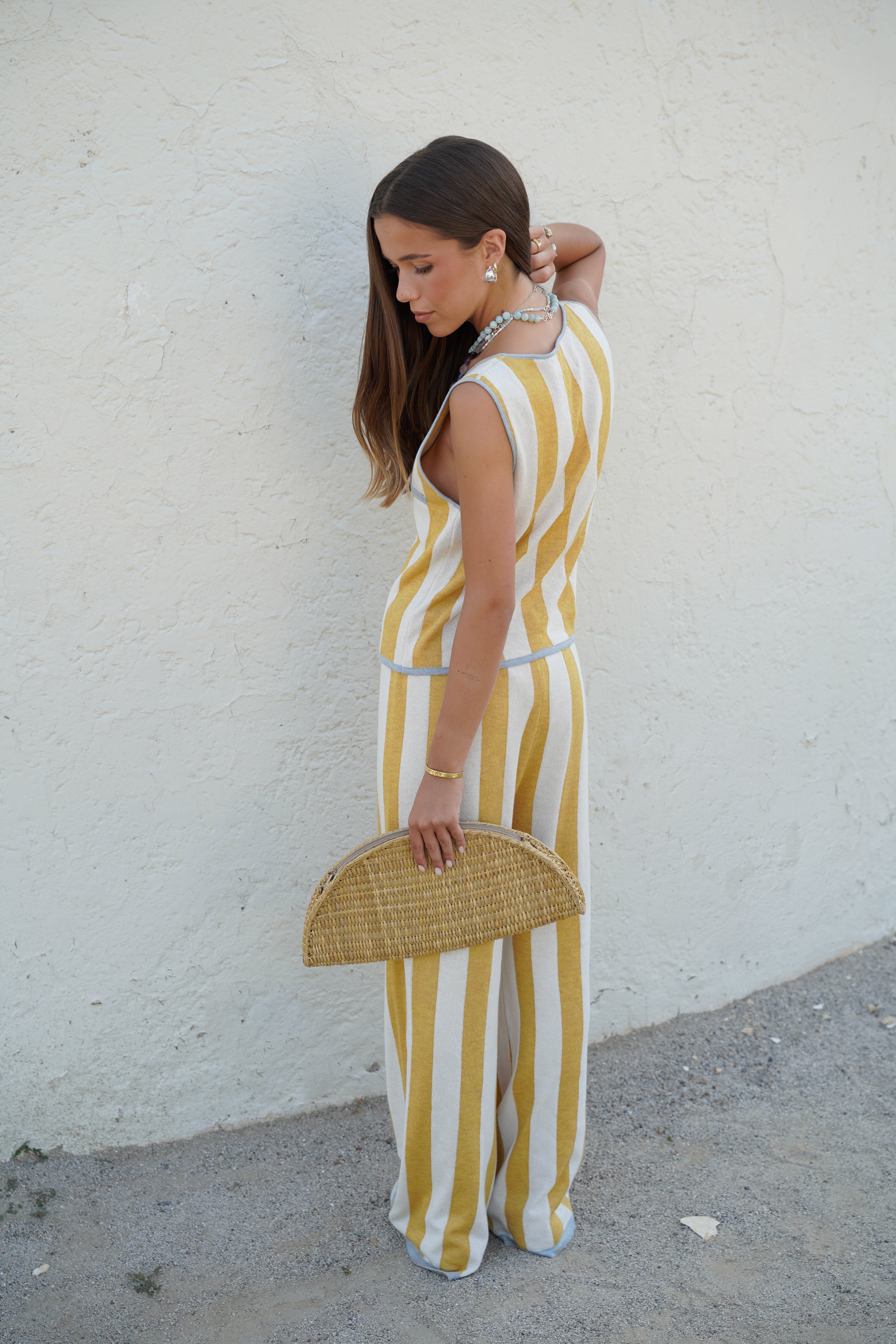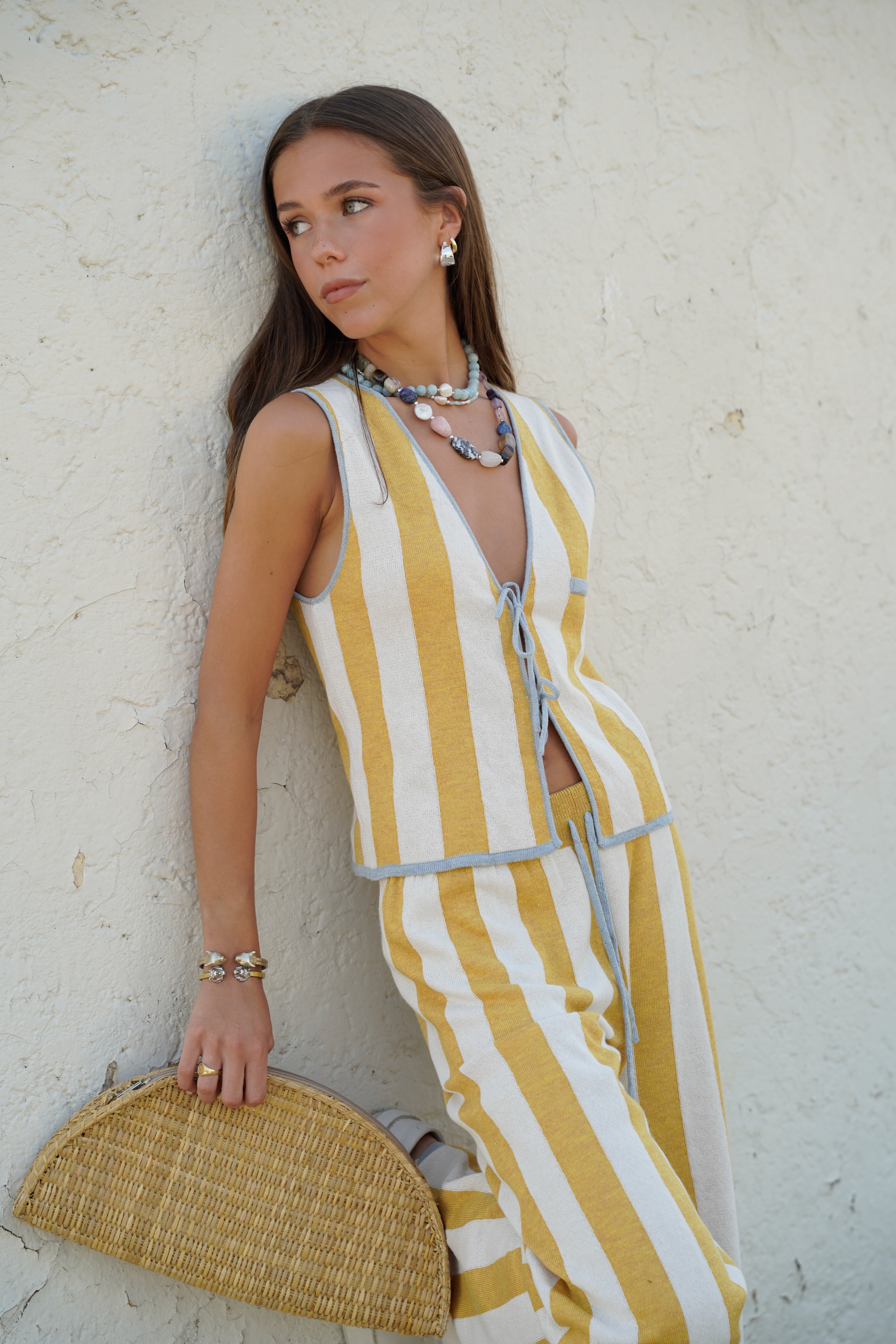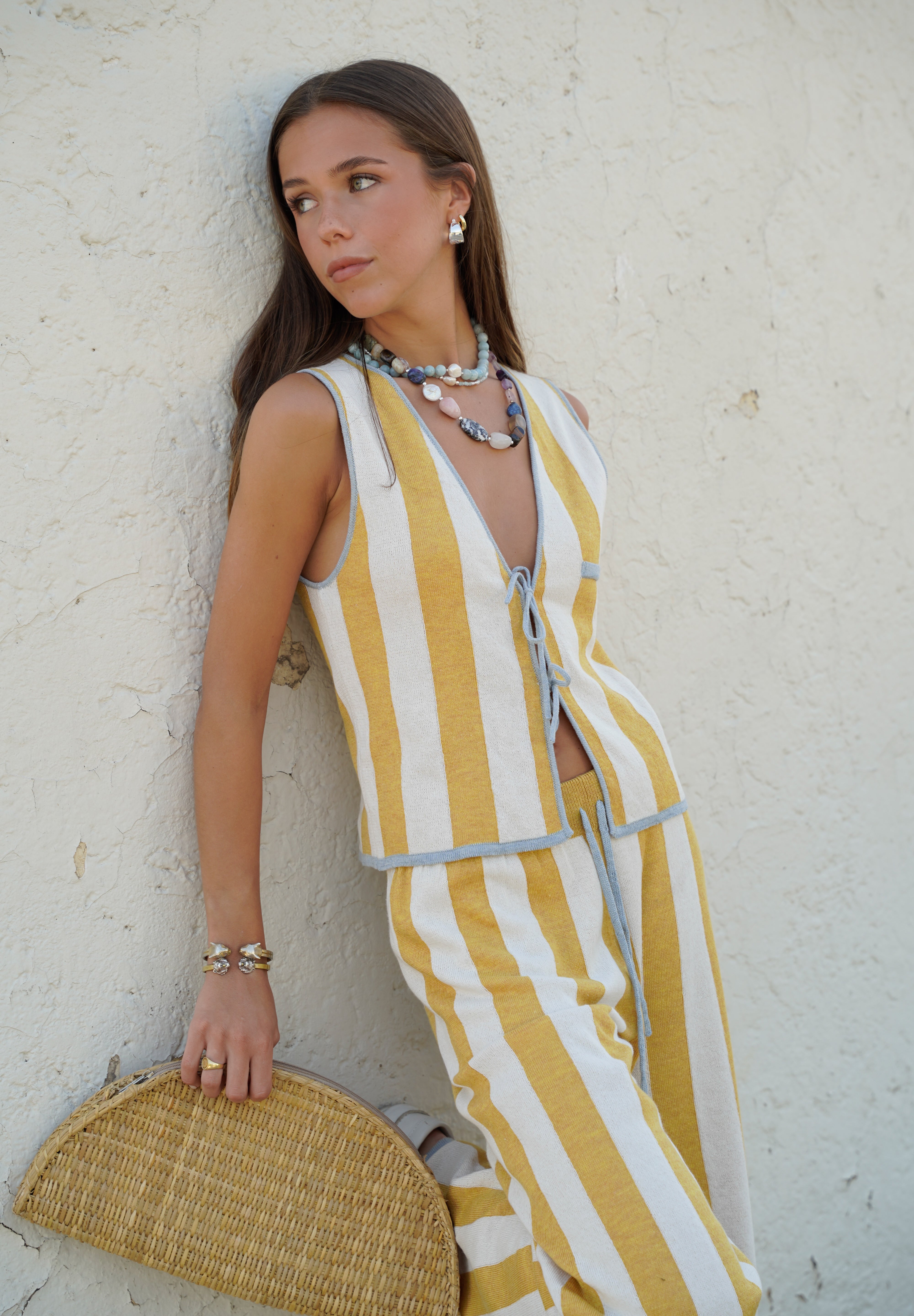 Pantalón tejido punto fino , suave confeccionado en algodón viscosa. Elasticado, con pretina de elástico y amarre en cintura. Detalles a color en basta y cordón de pretina.